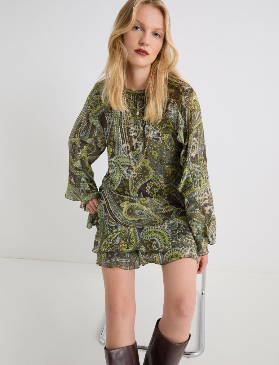 Parfaite avec des bottes et des bijoux fantaisie étincelants : cette robe courte à la coupe décontractée est ornée de volants romantiques sur la jupe. Le motif cachemire apporte une touche de couleur.