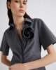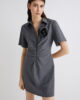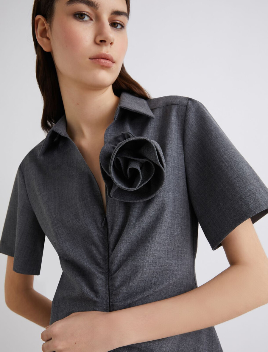 - Col chemise avec fente en V et fermeture éclair invisible