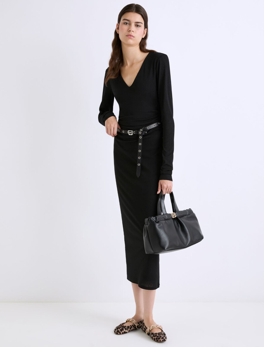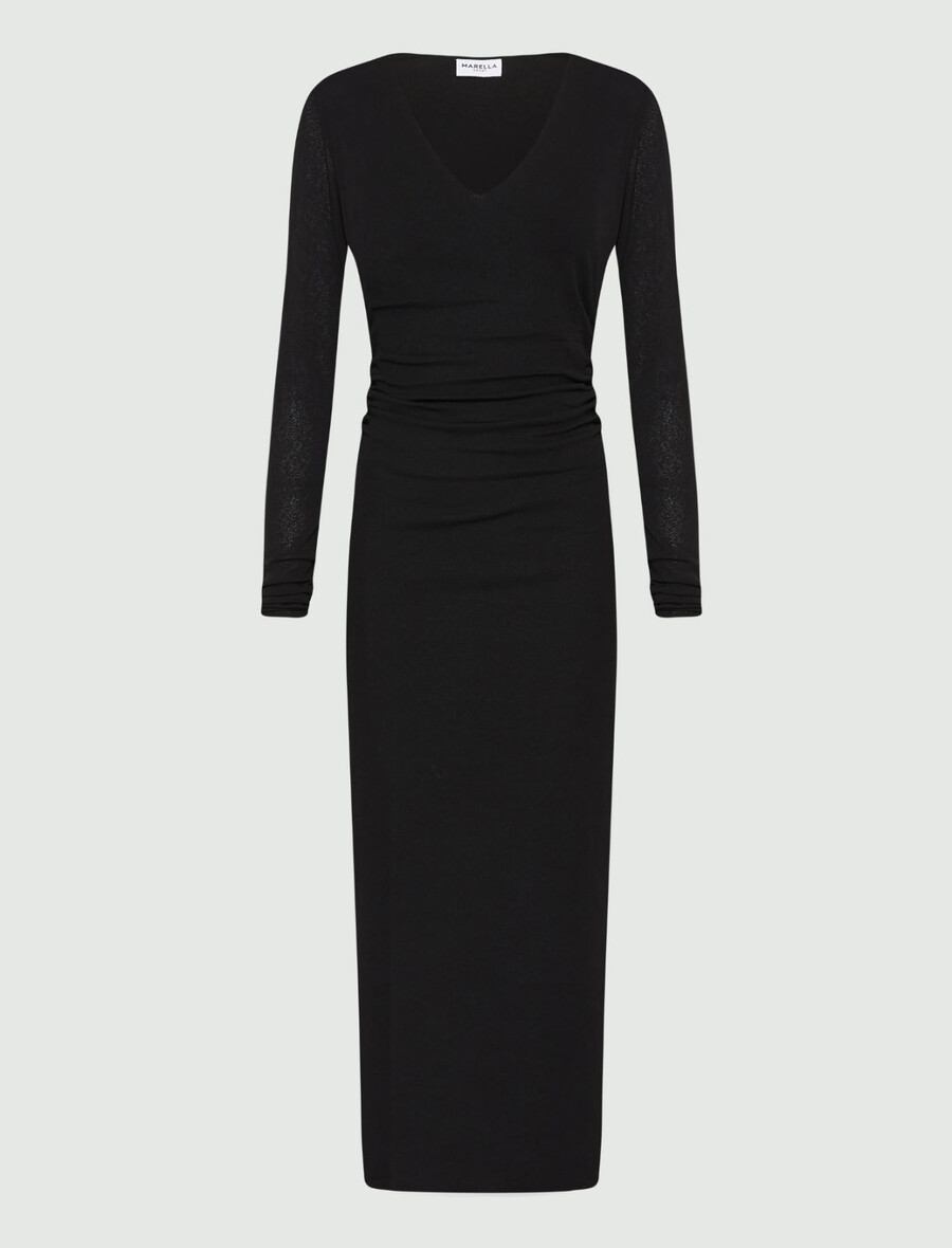 Une version urbaine de la robe en jersey de tulle, avec une coupe droite et un détail froncé moderne sur les côtés. Non doublée pour plus de légèreté, elle se marie parfaitement avec des bottines motardes et une ceinture rock.