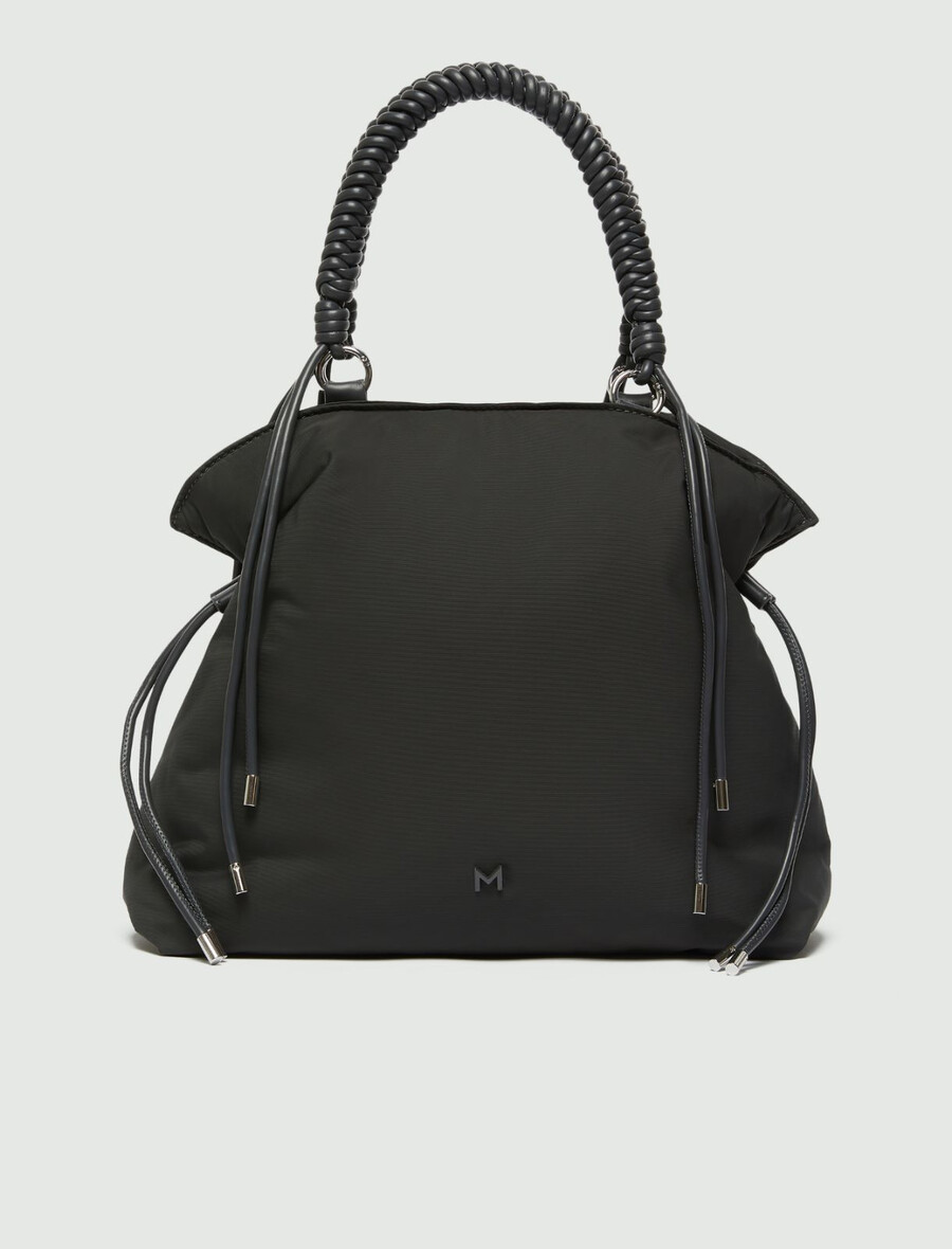 - Cabas en tissu technique rembourré avec fermeture magnétique et cordons de serrage latéraux.