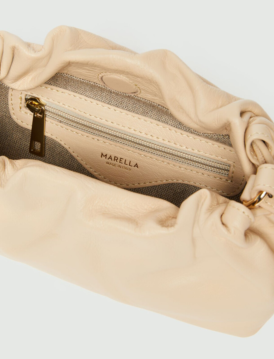 Ce sac souple en cuir Nappa se distingue par son subtil détail froncé. Le tannage sans métal témoigne de l’engagement environnemental de Marella.