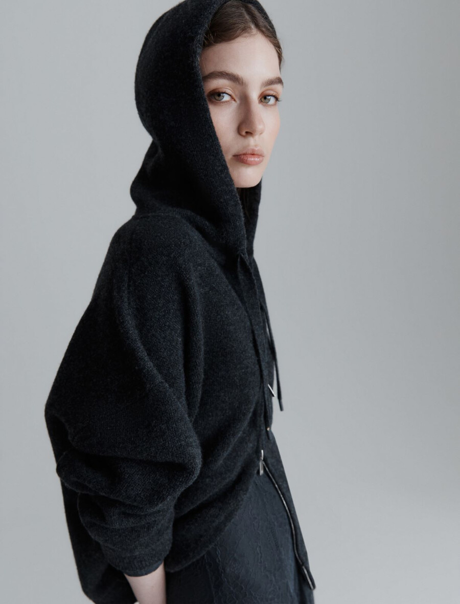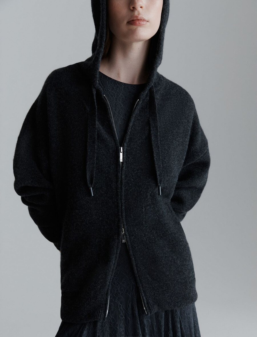 • Capuche à cordon avec embouts métalliques ton sur ton