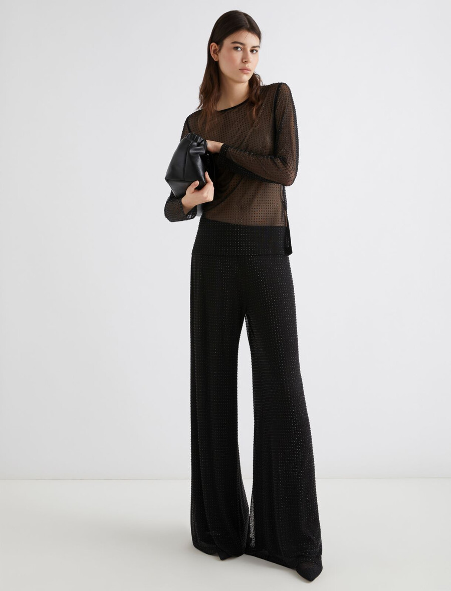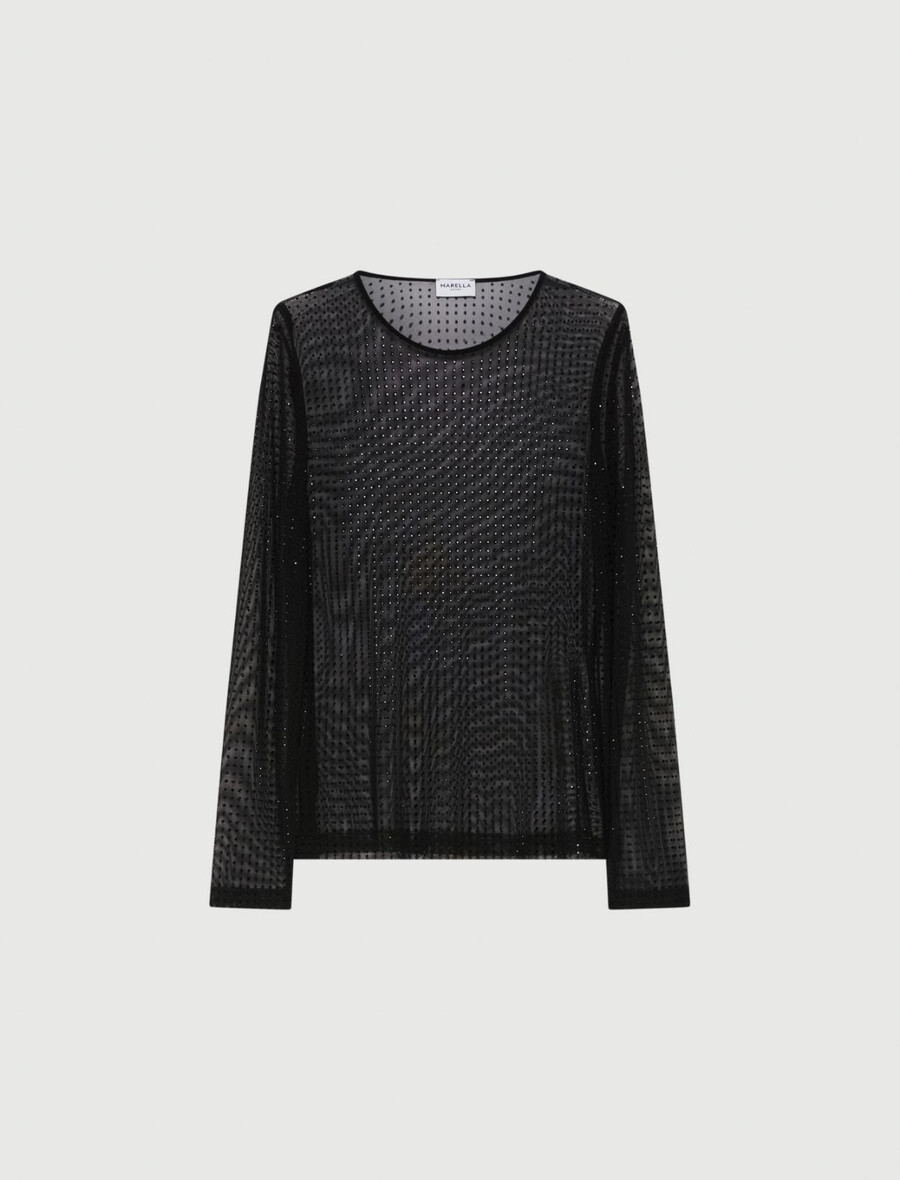 T-shirt en tulle orné de cristaux – NOIR