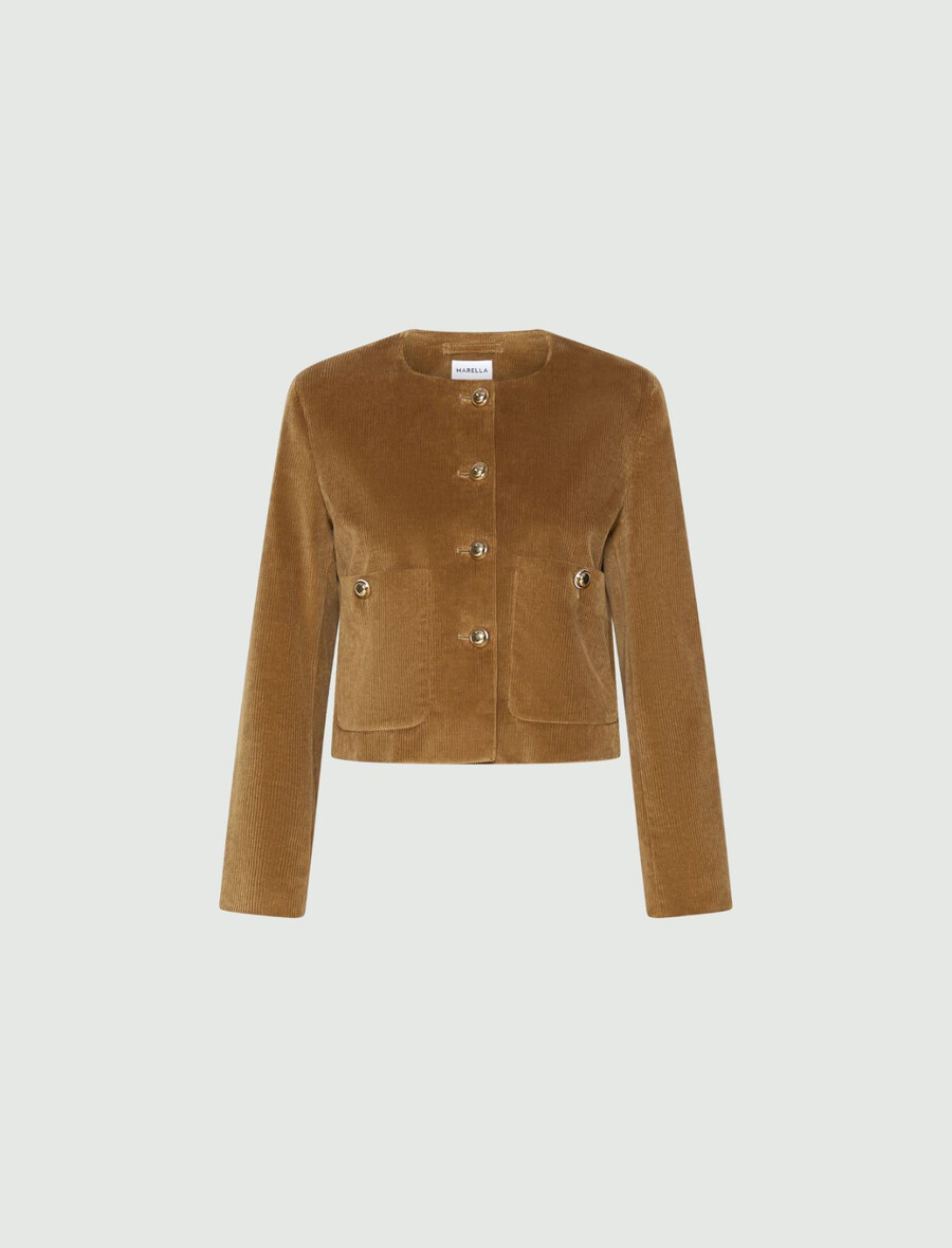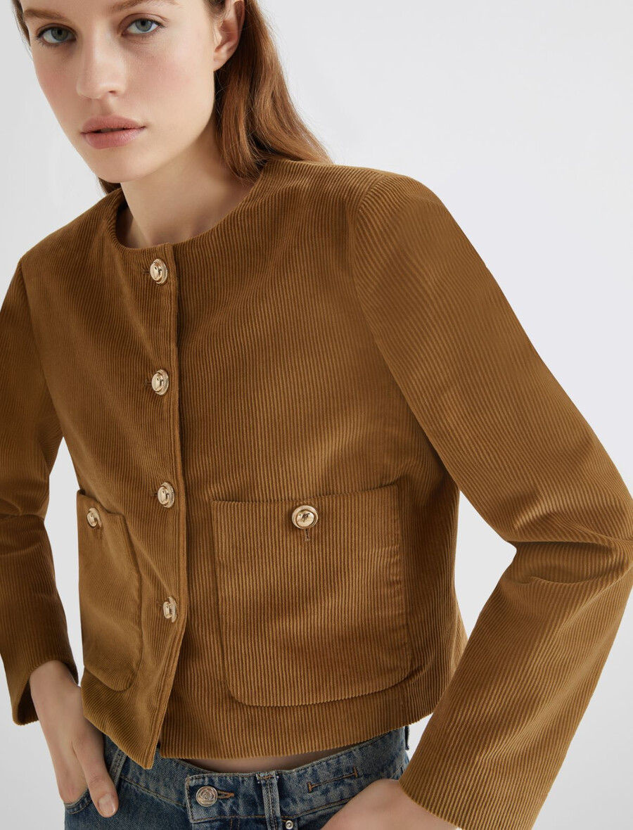 Une touche seventies et une coupe courte à la taille : la nouvelle veste carrée allie inspirations et tendances pour un look résolument cool. À porter avec un jean évasé et une chemise fluide.