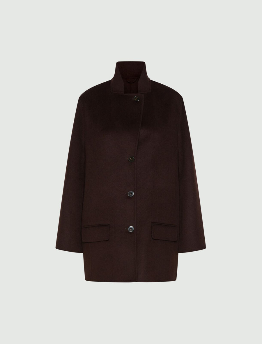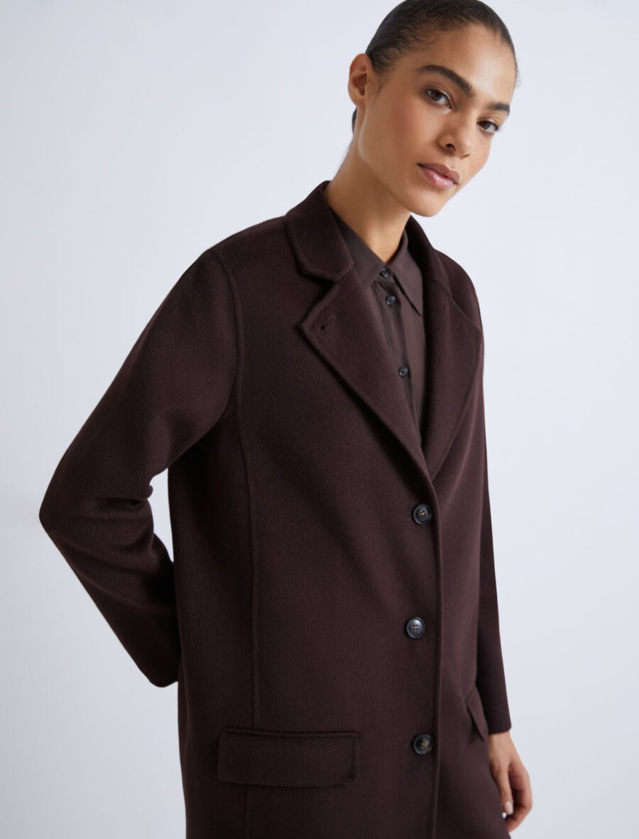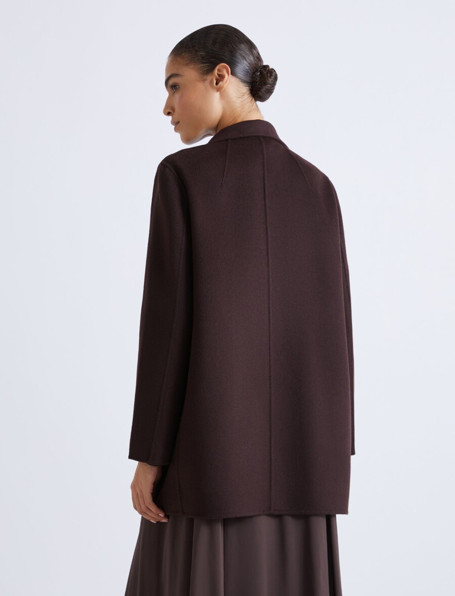 Cette veste épaisse en pure laine double face est un choix citadin polyvalent : sa coupe douce et enveloppante présente une légère cintrage aux hanches pour une silhouette contemporaine.