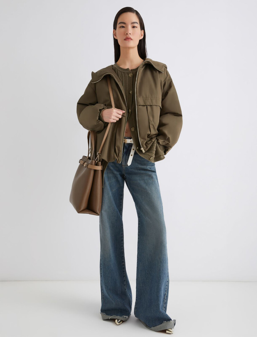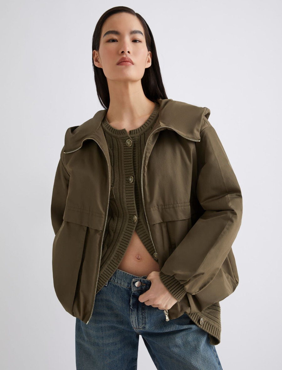 - Épaules tombantes, poignets élastiqués et fermeture éclair.
